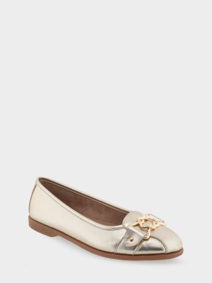 This comfortable women’s shoe Bia is a Ornamented Flat in Gold Faux Leather. This women’s flat heel Ornamented Flat is perfect for everyday. Rich with shoe comfort. the Bia Ornamented Flat in Gold Faux Leather possesses a diamond flex outsole. a ortholite foam insole. a stitch ‘n turn and even more incredible shoe comfort features.