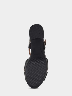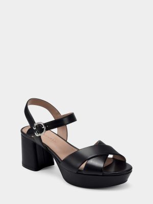 Platform sandal with modern elegance. chunky yet lightweight – the Cosmos features a block heel. crossover straps that frame the foot. and an ankle strap with a polished signature buckle. Crafted with black leather. they are the epitome of easy elegance and will instantly elevate any look.