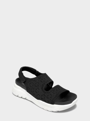 Sporty and sleek. the open-toe Helsea sandal is outfitted with a velcro ankle strap and crafted from a delicate lace knit fabrication for an unexpected finish.
