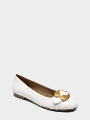 Sleek and minimalist. the paradise ballet flat features a polished round toe and streamlined shape. An oversized buckle brings a touch of matte gold. making it the ideal flat for day to night wear.