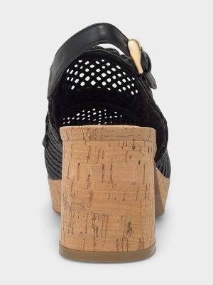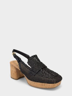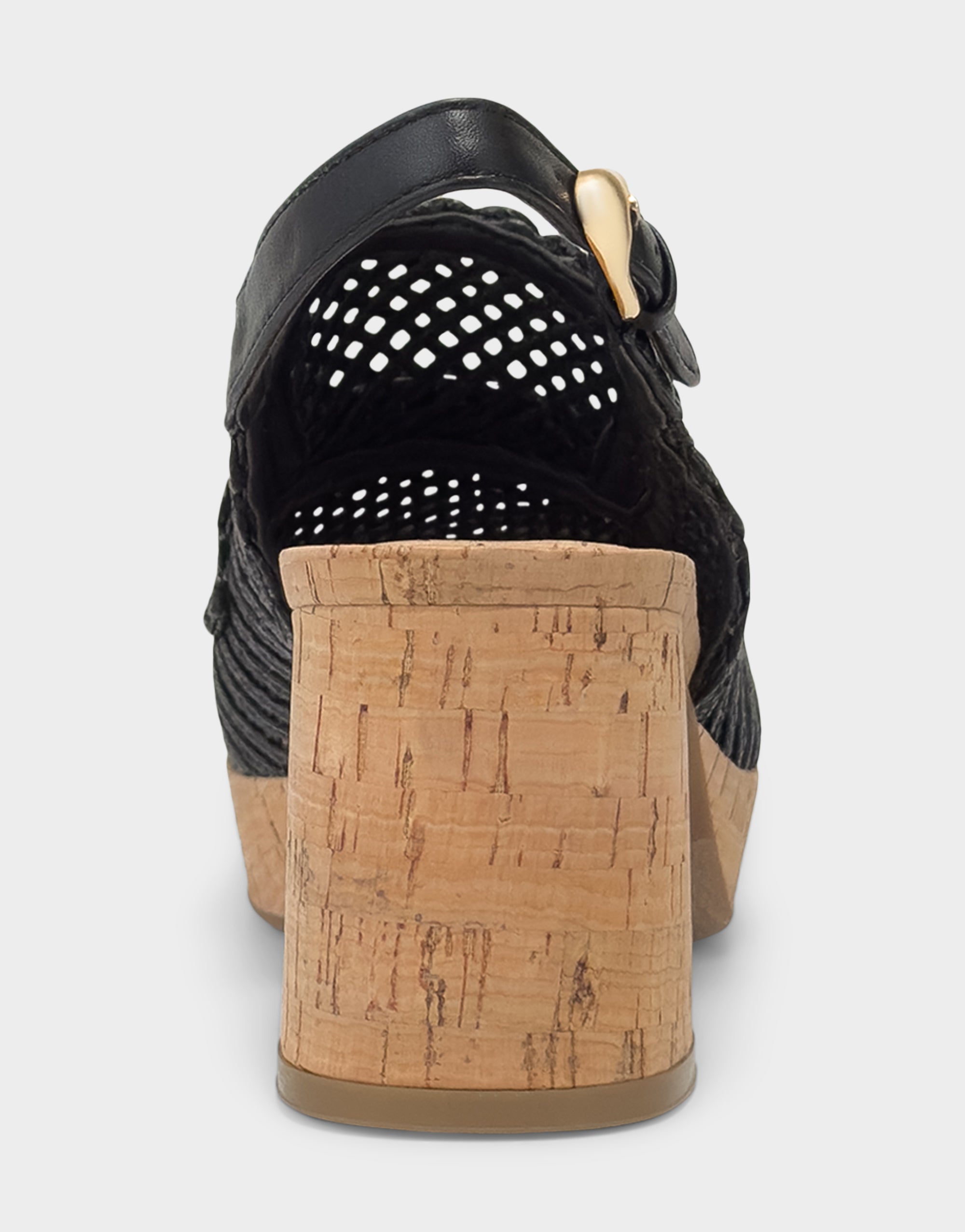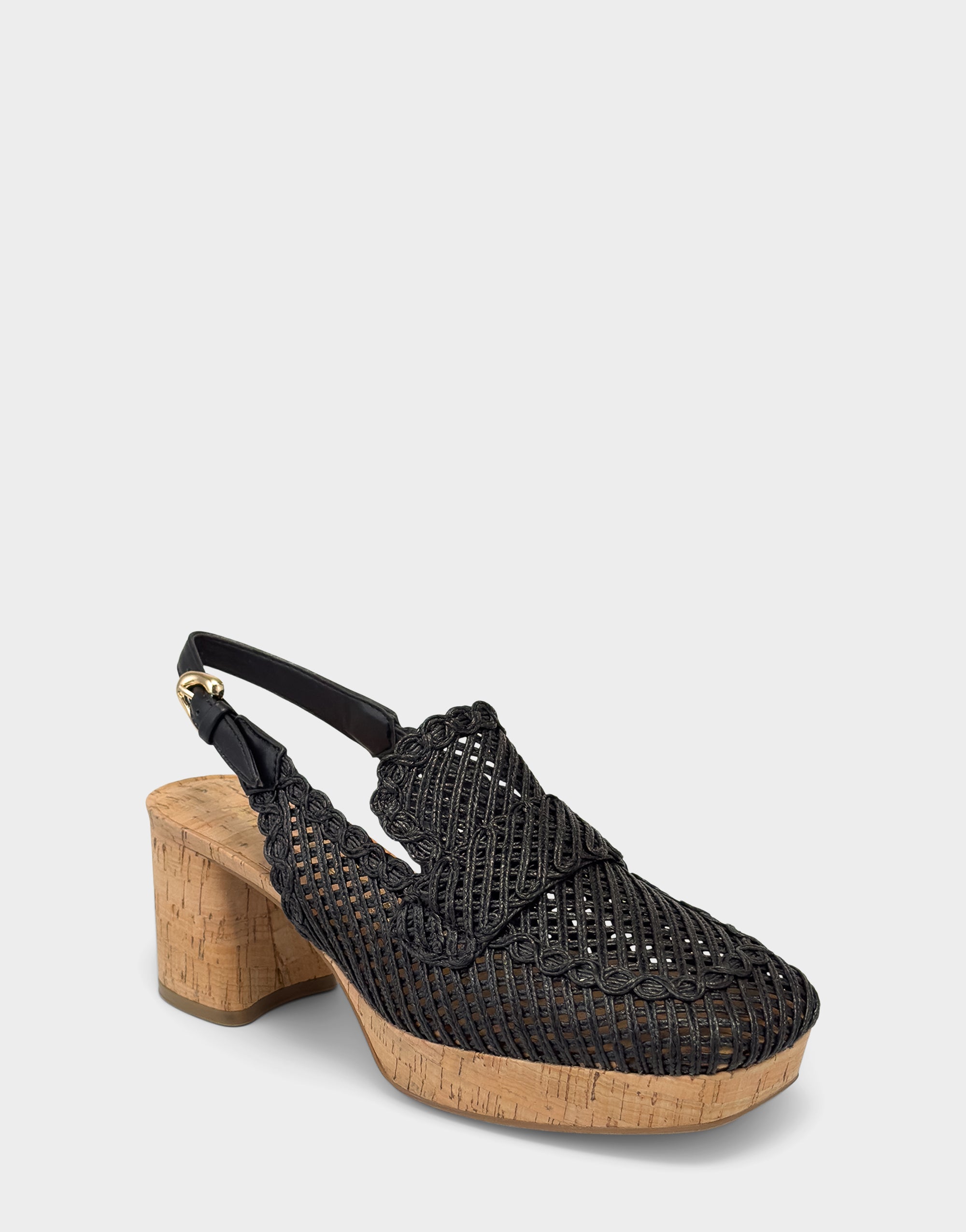 Santina is a warm-weather update to the classic platform slingback. A chunky block heel. cork sole and woven raffia texture make it breathable and lightweight for hotter days.